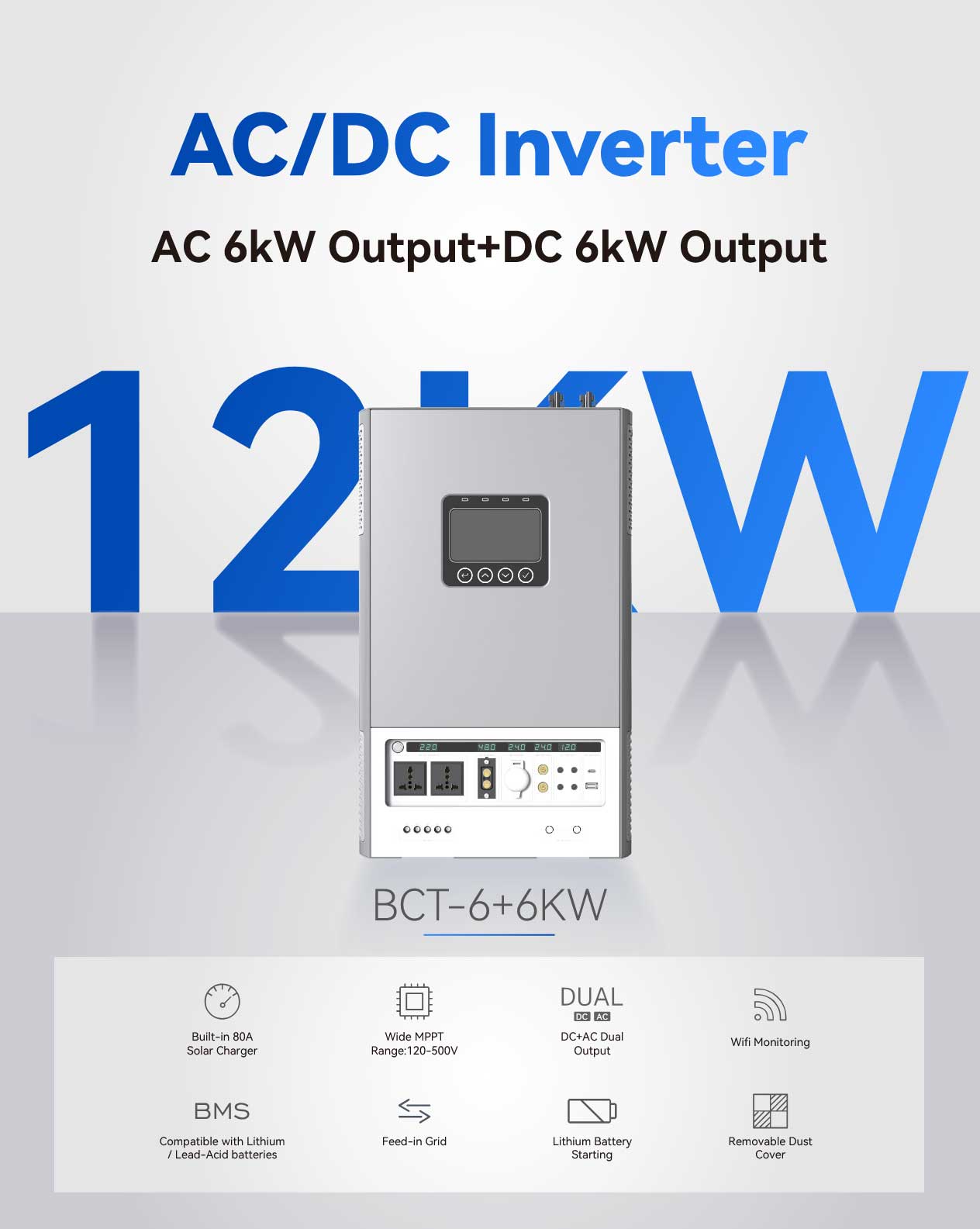AC/DC Inverter : AC 6kW Output + DC 6kW Output