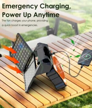 Charge it with USB or let the solar panel recharge it under the sun — no outlet needed. With its foldable stand, compact body, and dual light + fan function, it’s perfect for tents, picnic tables, cabins, or power outages.