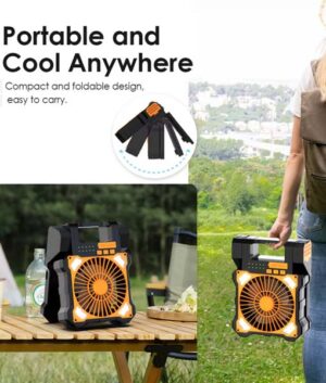 This Multifunctional Solar Camping Fan with LED Lantern is a must-have for campers, hikers, and emergency kits. Equipped with a powerful 5200mAh rechargeable battery, it runs quietly while providing up to 20 hours of breeze or 16 hours of lighting on a single charge.