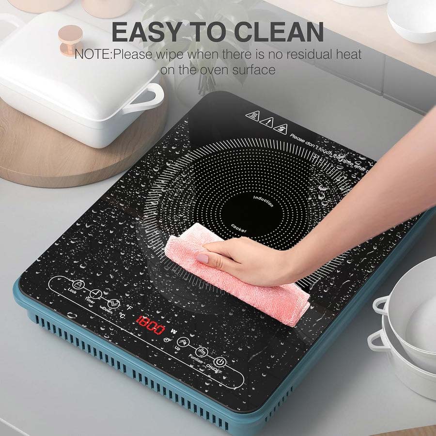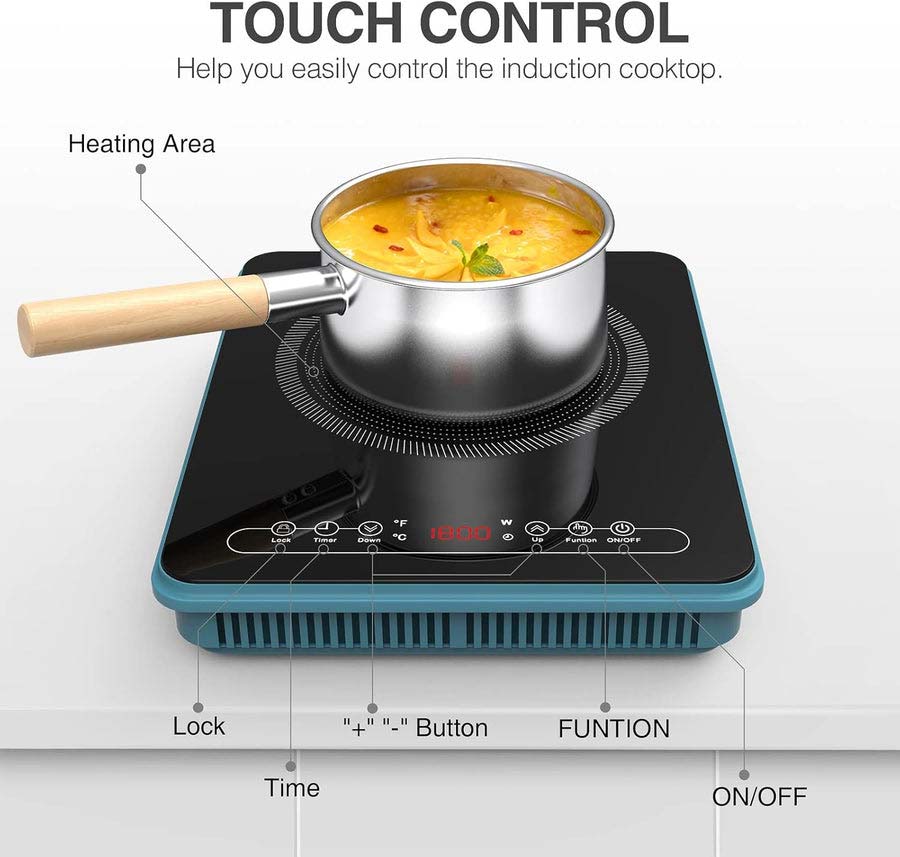 * 【Multiple mode control functions】The portable induction cooktop single burner has nine 9 types of power (200w-1800w) and 9 types of temperatures (80°C-270°C/176°F-518°F), the versatile options allow you to precisely control temperature and time, giving food cooking more precision. Efficient heat conduction allows food to be heated more evenly, speeding up cooking while also allowing us to enjoy the kitchen more.